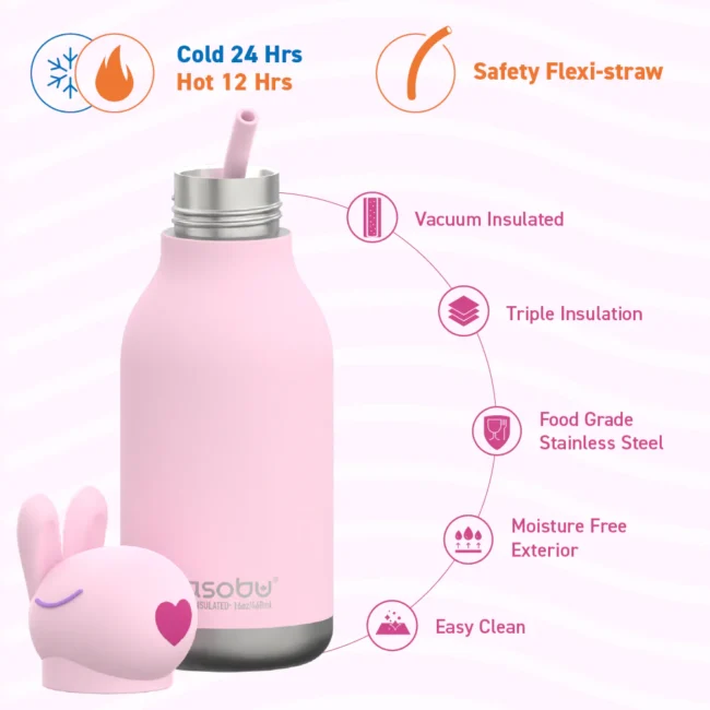 Asobu Bestie Παιδικό Παγούρι Θερμός Ανοξείδωτο με Καλαμάκι Bunny 460ml
