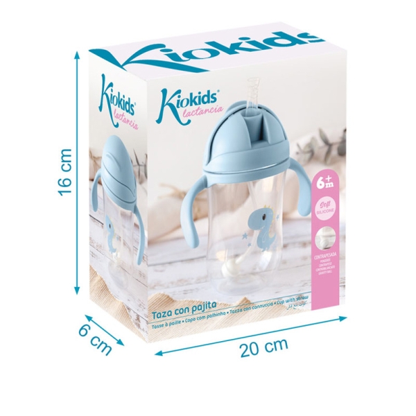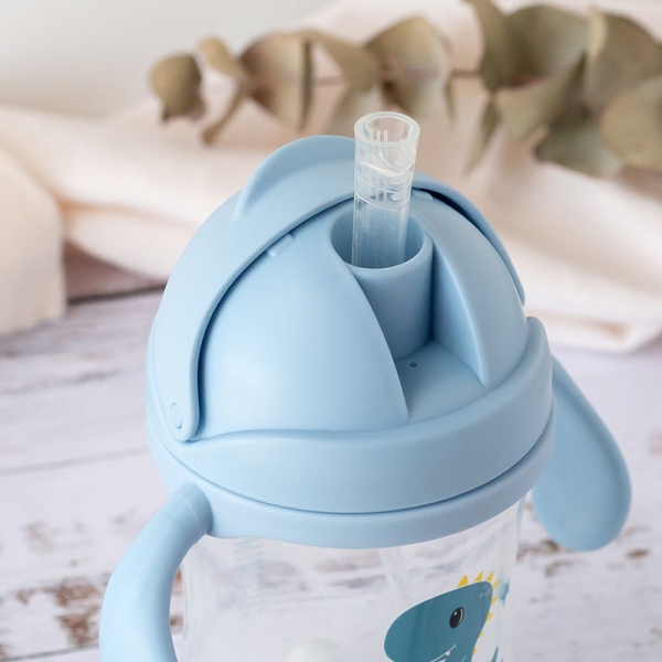 Παγουράκι της σειράς Little Dinosaur από την Ισπανική Kiokids, με ανατομικές λαβές και αντισταθμισμένο καλαμάκι για να πίνει το μικρό σας όπως και να κρατάει το ποτηράκι.