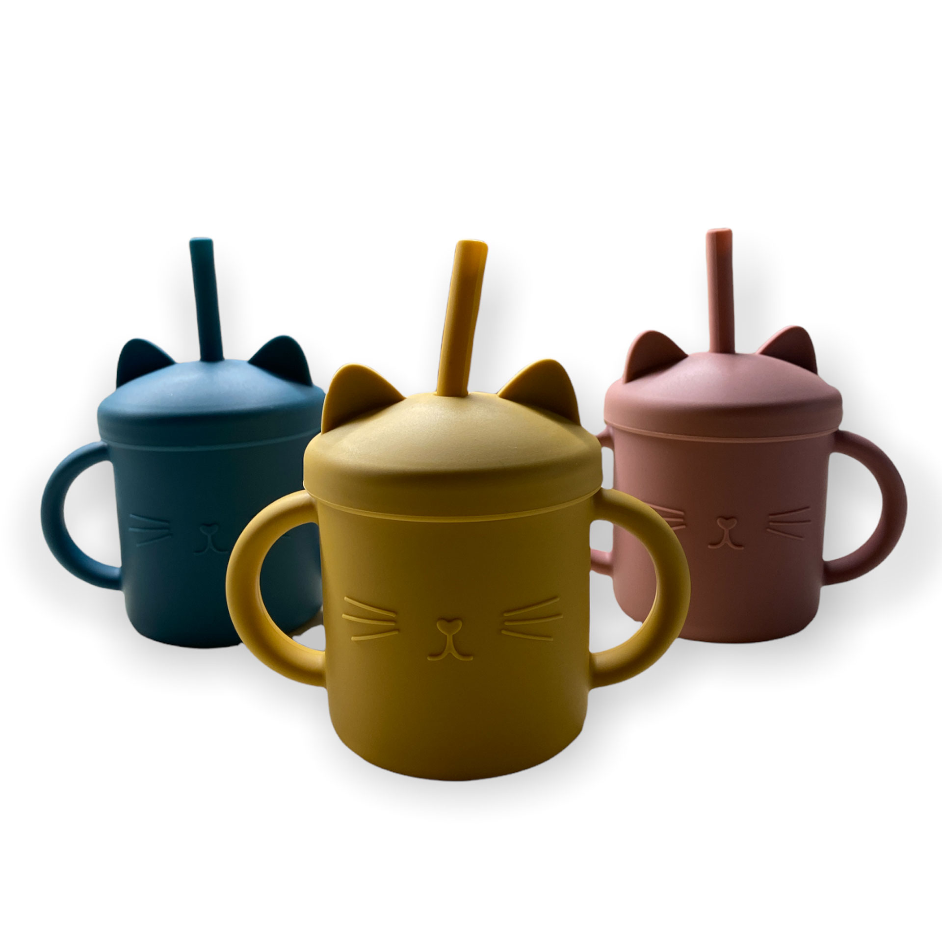 Cookie The Cat το Εκπαιδευτικό Ποτηράκι μας σιλικόνης με στεγανό καπάκι & καλαμάκι είναι ιδανικό για την μετάβαση της αυτονομία του μωρού σε σχέση με τα ροφήματα.
