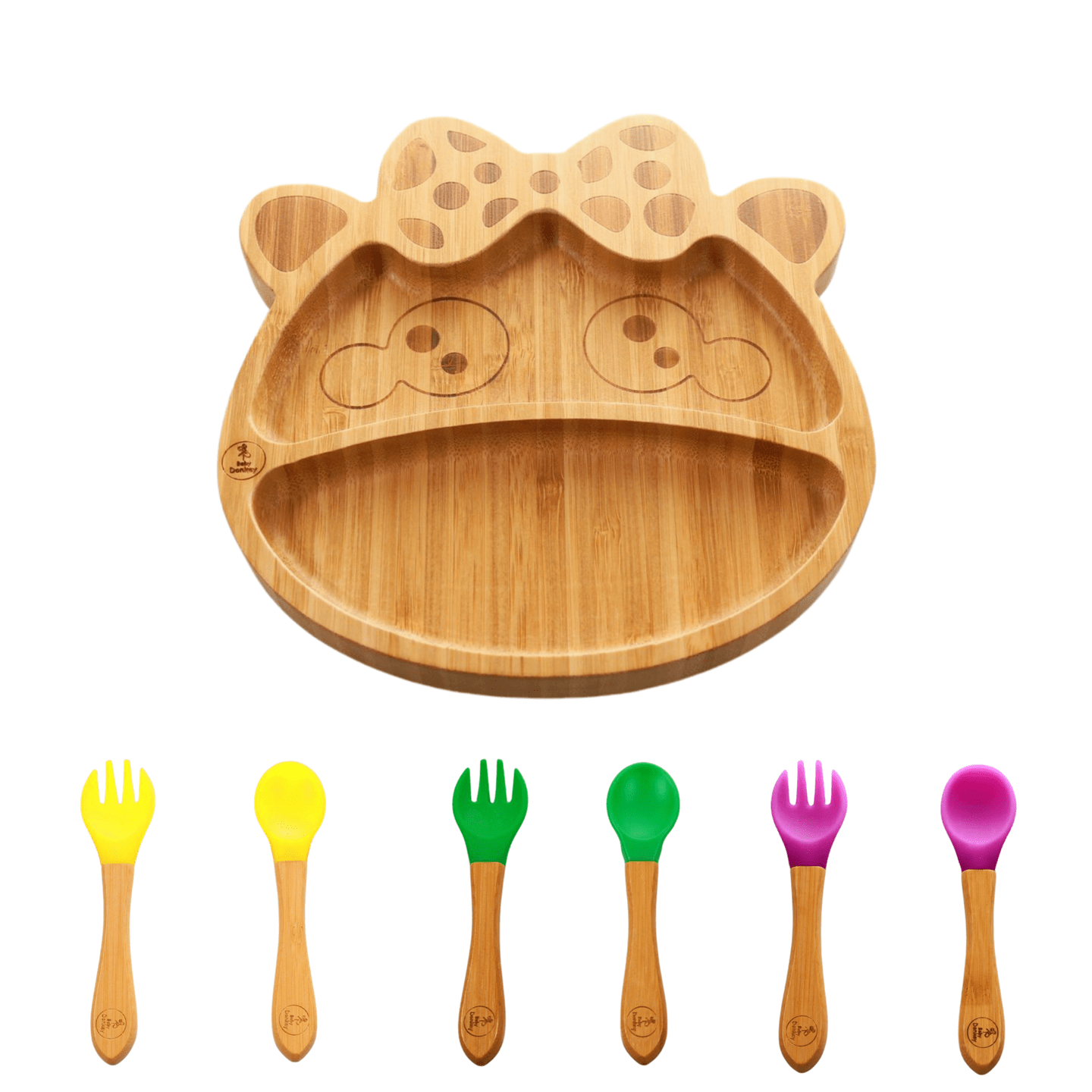 Baby Donkey Σετ Μπαμπού Παιδικό Πιάτο με βεντούζα Καμηλοπάρδαλη & Κουτάλι-Πιρούνι