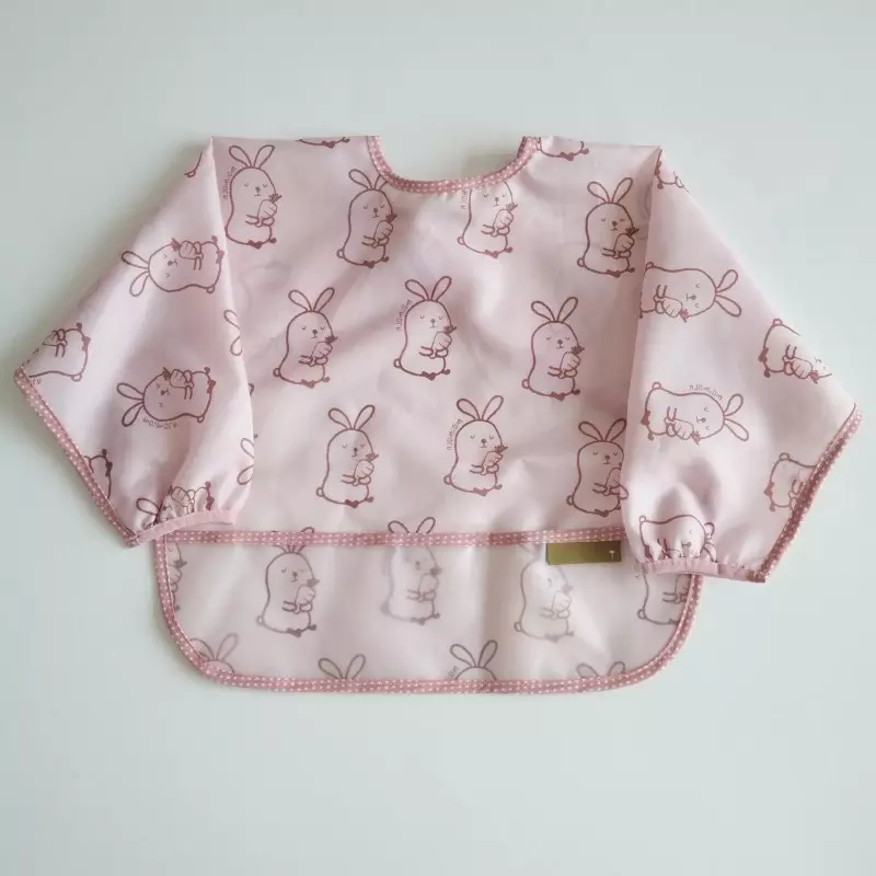 Σαλιάρα Αδιάβροχη με μανίκια και τσέπη με κουνελάκια