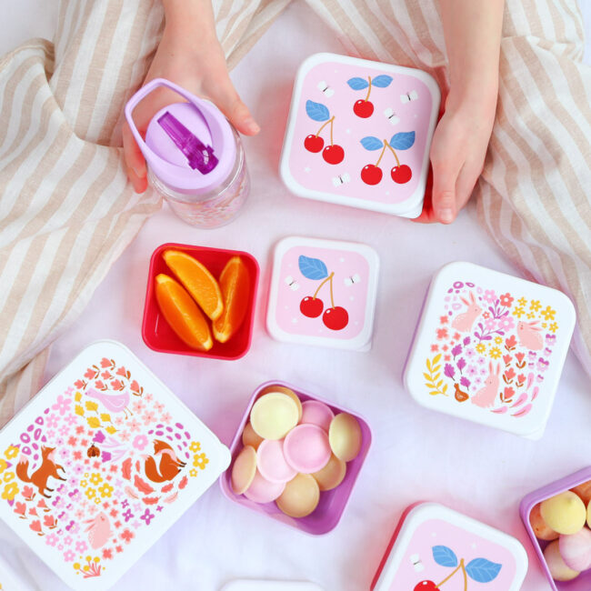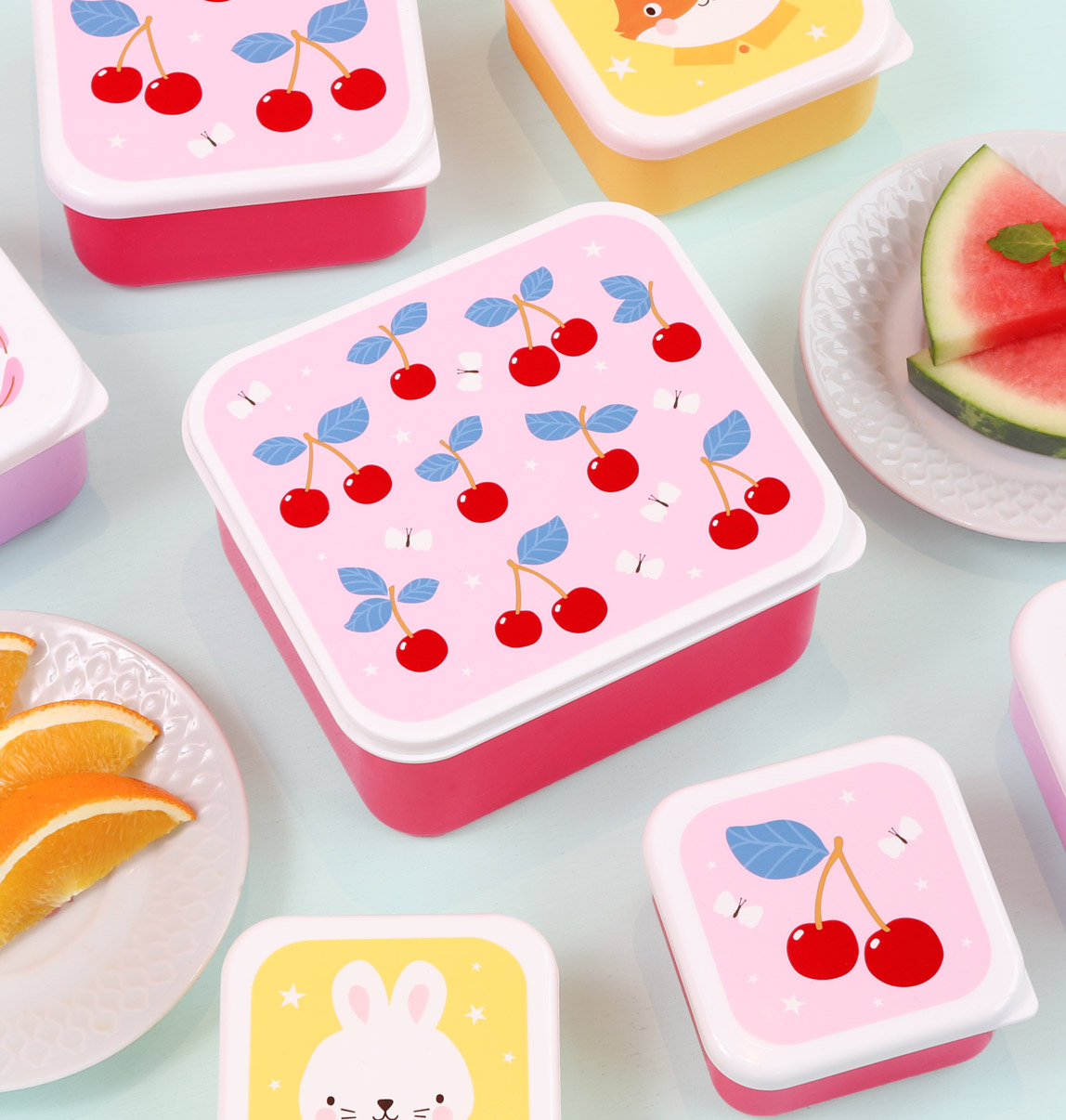 A little lovely company: Σετ 4 δοχεία φαγητού Lunch & Snack Box -Cherries