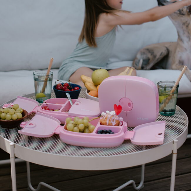 NUUMI στενό μεσημεριανό κουτί για παιδιά με Ροζ αυτοκόλλητα.